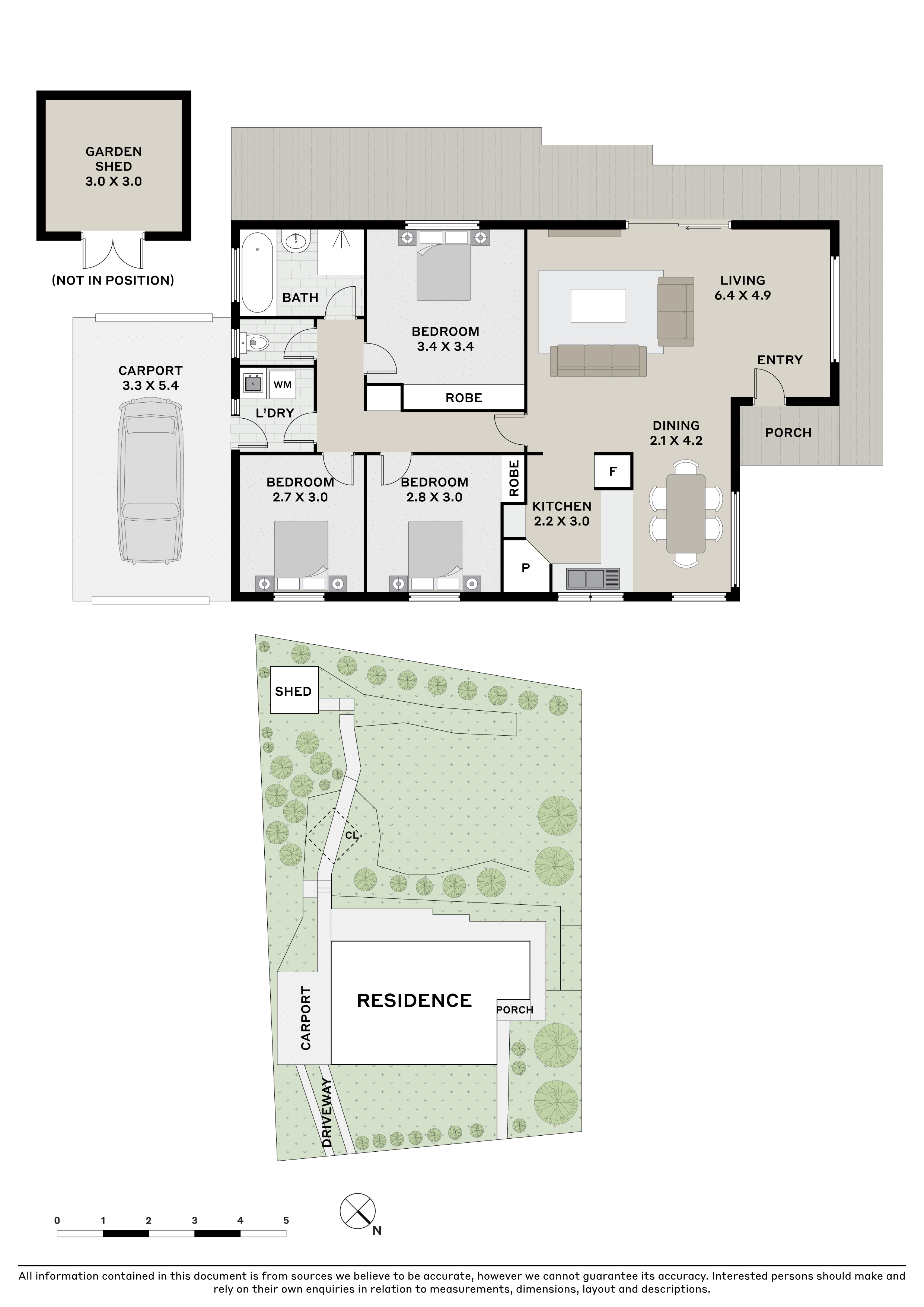 Accommodation includes three well-proportioned bedrooms, all freshly updated with new carpet to create a warm and inviting atmosphere. The generous master bedroom is positioned for privacy, while a central bathroom offers both a shower and separate bath. The separate laundry provides direct outdoor access for convenience.