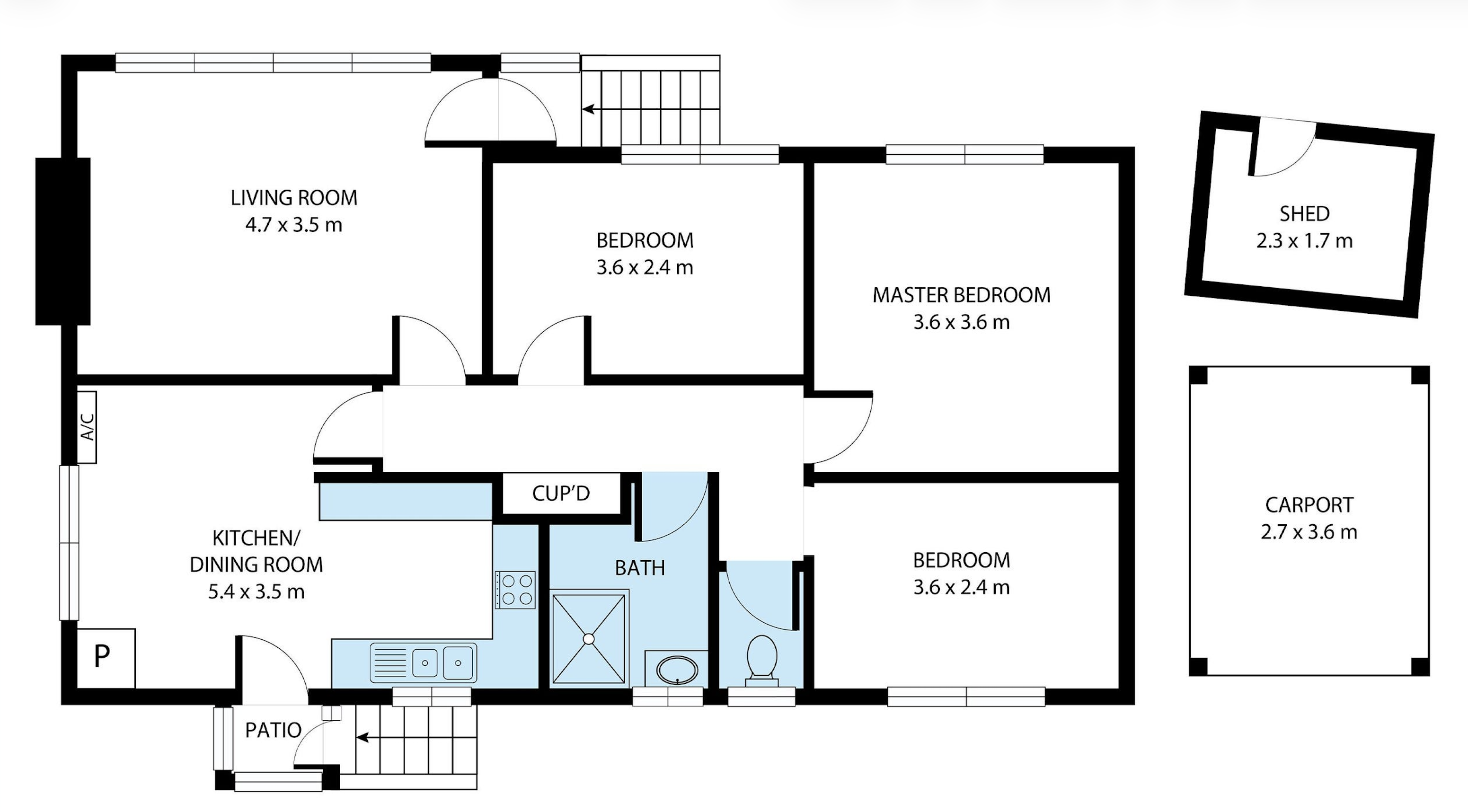 • Carport for one vehicle and additional off street parking for multiple vehicles